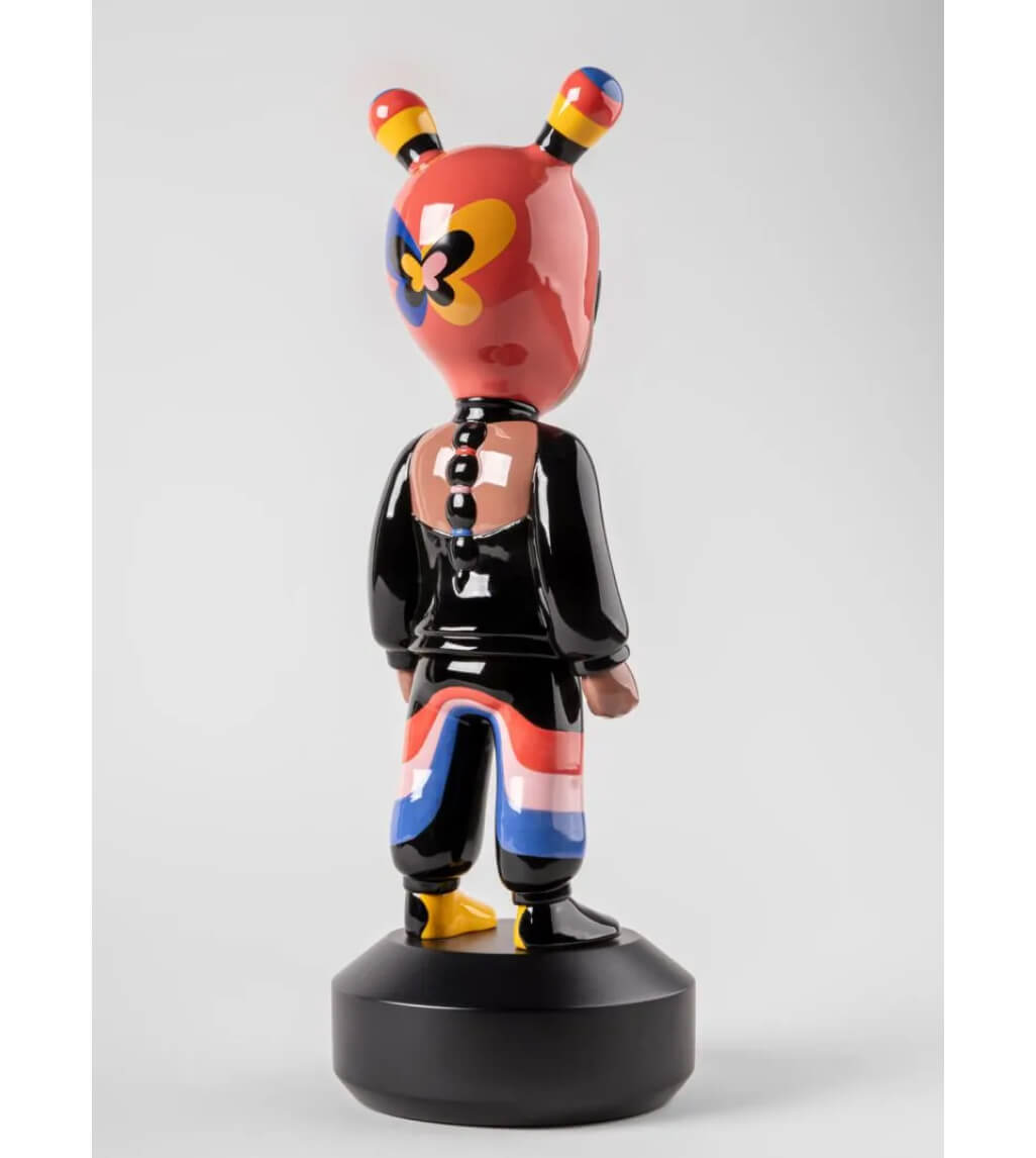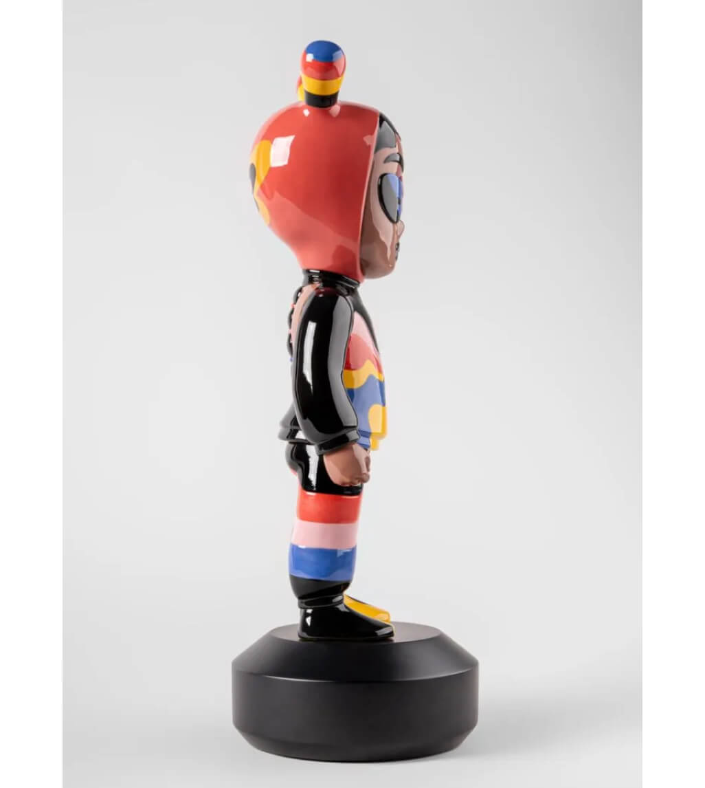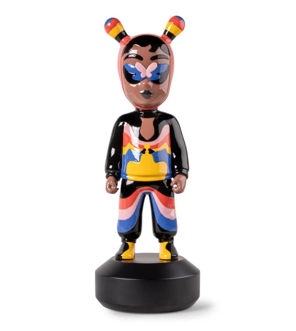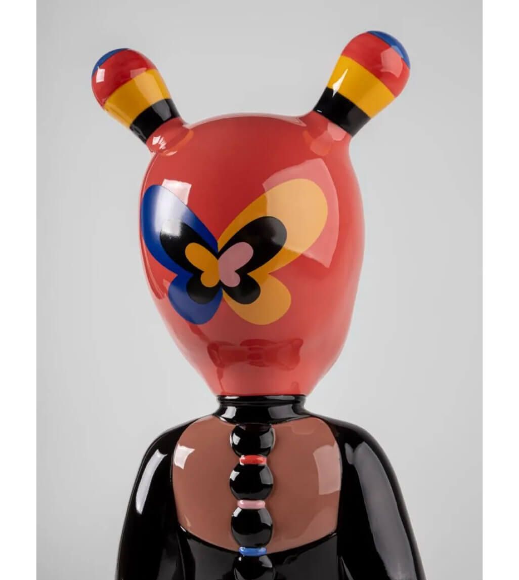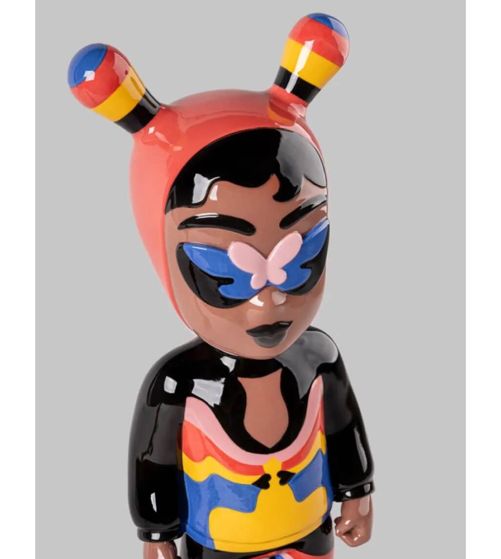 Создав первого женского персонажа в коллекции, Джейд наполнила скульптуру мощным посланием о женской силе, свободе и самовыражении. Ее фирменный стиль, сочетающий насыщенные цвета, динамичные линии и элементы поп-эстетики, делает работу живой, смелой и вдохновляющей. В этой композиции женщина становится центральной фигурой, демонстрируя незыблемую уверенность и стремление к раскрытию своего потенциала.