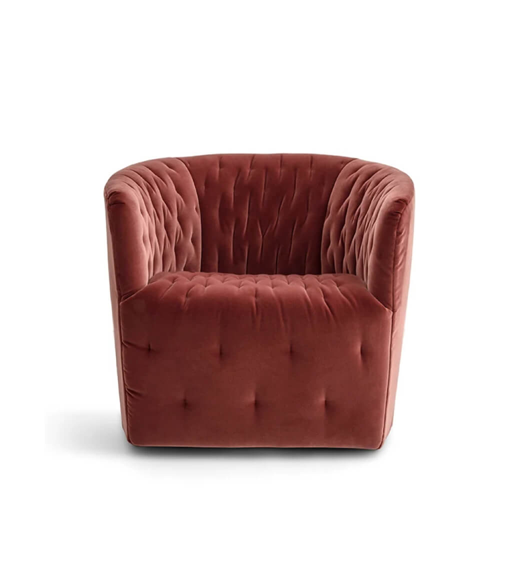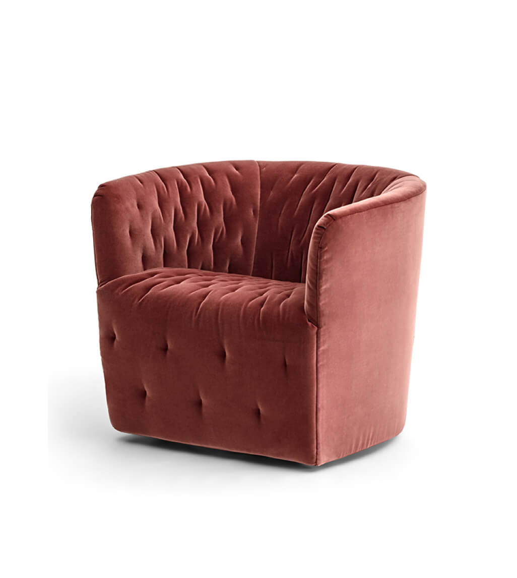 Возможность выбрать цвет обивки и контрастную строчку или строчку тон в тон открывает простор для персонализации, позволяя создать поистине уникальный предмет. Дополнительные опции — вращающееся основание и съемные чехлы — делают Amélie не только красивым, но и практичным решением.